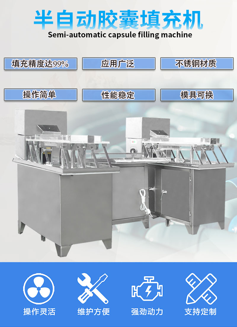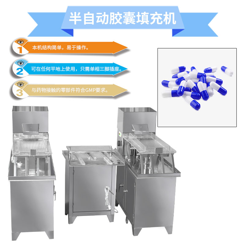 4、适用于00#、0#、1#、2#、3#、4#胶囊的套合,适用于各种型号胶囊进行各种药粉及颗粒的充填;